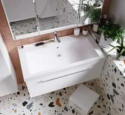 Тумба Desire – изящное решение для интерьера ванной комнаты. Рельефный фасад создает ритмичную игру света и теней. Черные ручки-кнопки контрастируют с белым фасадом и подчеркивают её современный дизайн.Характеристики: