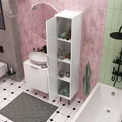 Вместительный и стильный шкаф-пенал в насыщенном черном цвете станет прекрасным дополнением современных или эклектичных ванных комнат в любой цветовой гамме. Его отличают лаконичный дизайн, высокое качество материалов производства, а также бескомпромиссная функциональность. Он прекрасно подойдет для компактного и удобного размещения всего, что всегда должно быть под рукой в ванной комнате. Шкаф длительное время сохраняет эстетику и привлекательный внешний вид, благодаря чему становится по-настоящему выгодной инвестицией в практичное и эффектное оформление пространства.Характеристики: