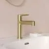 Стильный смеситель для умывальника, где удачно сочетает актуальный современный дизайн и новый трендовый оттенок матового золота с брашированным покрытием. Тонкая удлиненная ручка добавляет смесителю изящества и комфорт в управлении. Расстояние между ручкой и изливом увеличено для большего удобства.