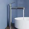 Стильный высокий смеситель для настольного умывальника удачно сочетает актуальный современный дизайн и классический цвет хрома. Тонкая удлиненная ручка добавляет смесителю изящества и комфорт в управлении. Расстояние между ручкой и изливом увеличено для большего удобства.