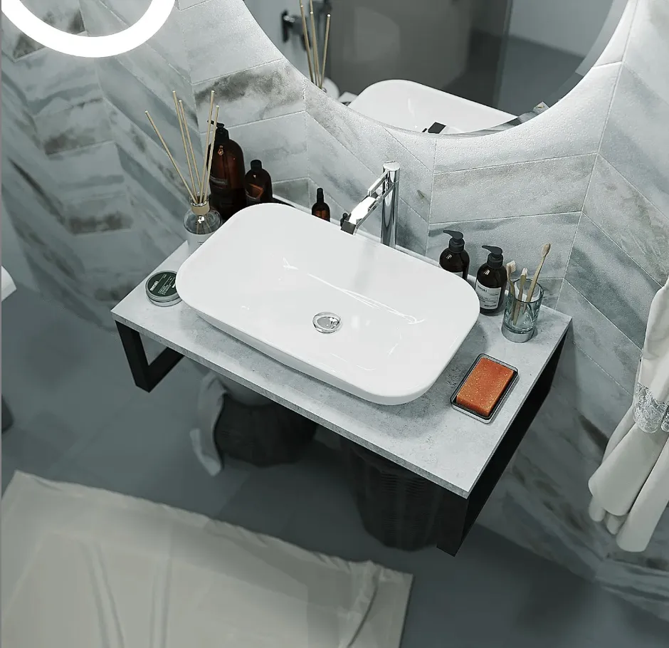 Функциональная и стильная столешница в востребованной и актуальной стилистике LOFT. Минималистичная и одновременно эффектная, она изготовлена в универсальной прямоугольной форме и дополнена такими практичными деталями, как металлические кронштейны, которые можно использовать в качестве рейлингов. Столешница выполнена из проверенных материалов, прекрасно защищена от воздействия влаги, не склонна к появлению сколов, царапин, трещин и других дефектов. Она подойдет для ванных комнат любых размеров и практически любой цветовой гаммы - от сдержанной до яркой и насыщенной.