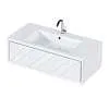 Тумба Glace - это изысканная мебель для ванной комнаты, выполненная в универсальном белом цвете, станет украшением современного интерьера. Модель шириной 100 см объединяет в себе элегантный дизайн и продуманную функциональность, оснащена вместительным выдвижным ящиком для хранения. Изящные стеклянные боковины придают конструкции легкость и воздушность. Тумба изготовлена из ЛЛСП с технологией PROTECT, столешница изготовлена из МДФ и покрыты итальянской эмалью, поэтому изделие не деформируется во влажной среде и сохранит первоначальный вид на долгие годы. Ящик с доводчиками гарантируют плавное и бесшумное закрывание.Характеристики: