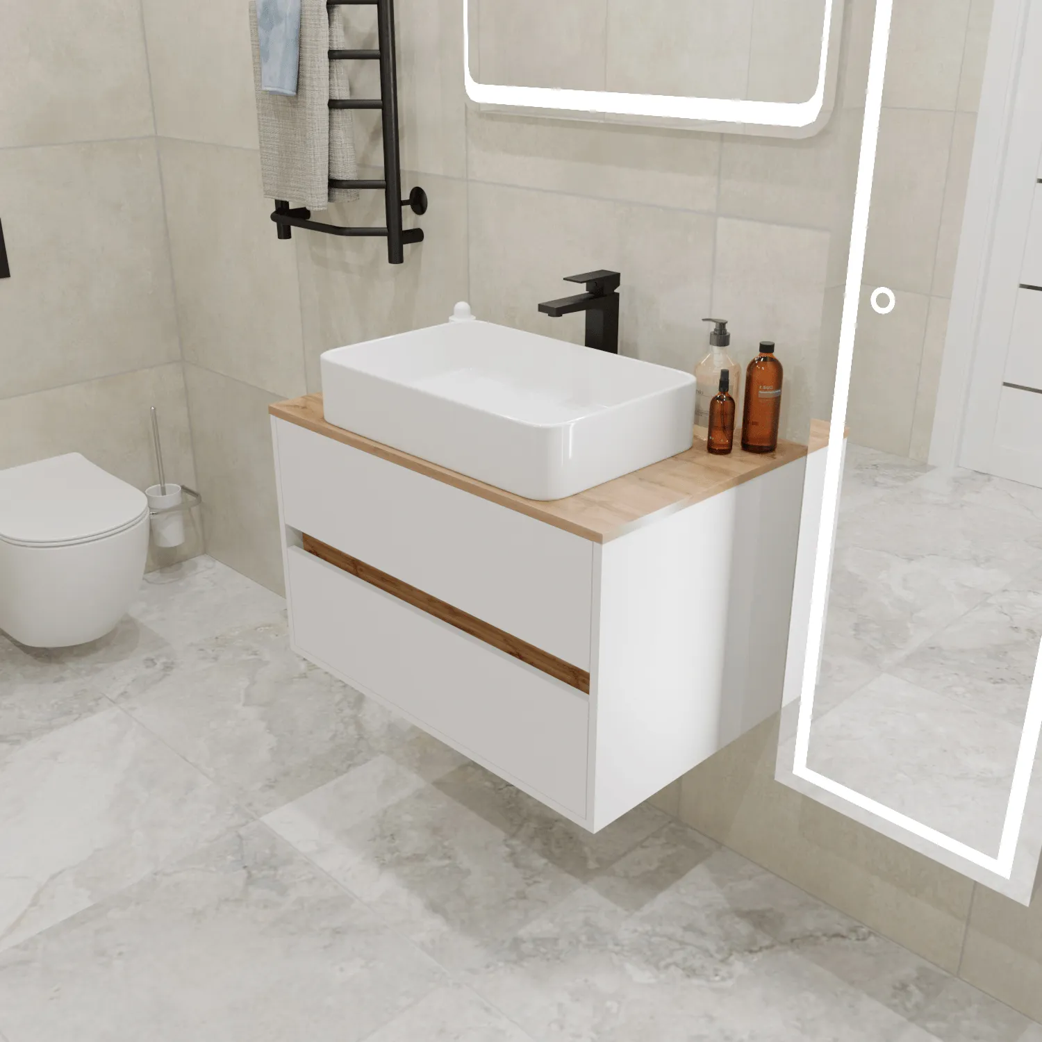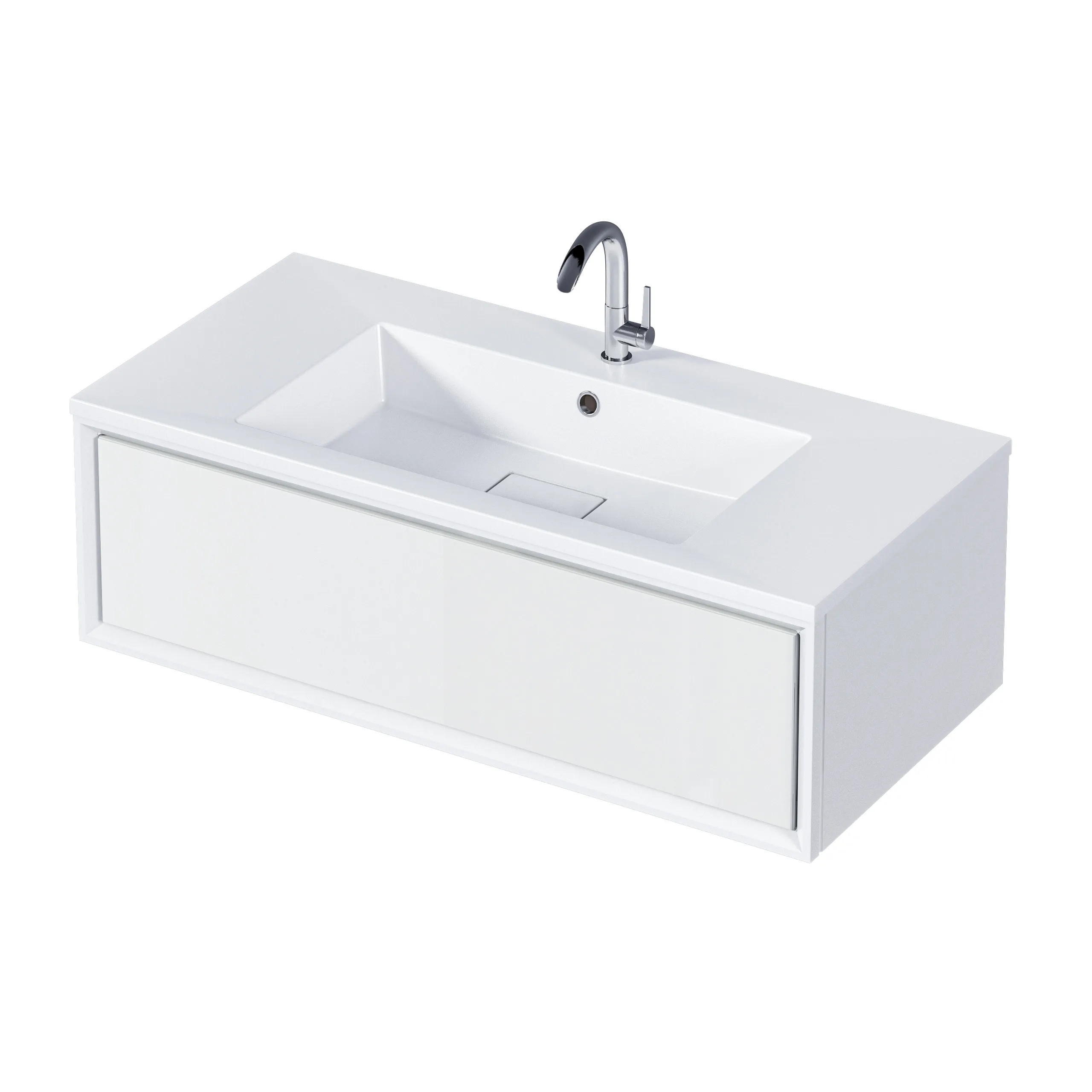 Тумба под раковину* Milacco - это изысканная мебель для ванной комнаты, выполненная в универсальном белом цвете, станет украшением современного интерьера. Модель шириной 100 см объединяет в себе элегантный дизайн и продуманную функциональность, оснащена вместительным выдвижным ящиком для хранения. Изящные стеклянные боковины придают конструкции легкость и воздушность. Тумба изготовлена из ЛЛСП с технологией PROTECT и покрыта итальянской эмалью, поэтому изделие не деформируется во влажной среде и сохранит первоначальный вид на долгие годы. Ящик с доводчиками гарантируют плавное и бесшумное закрывание.Характеристики: