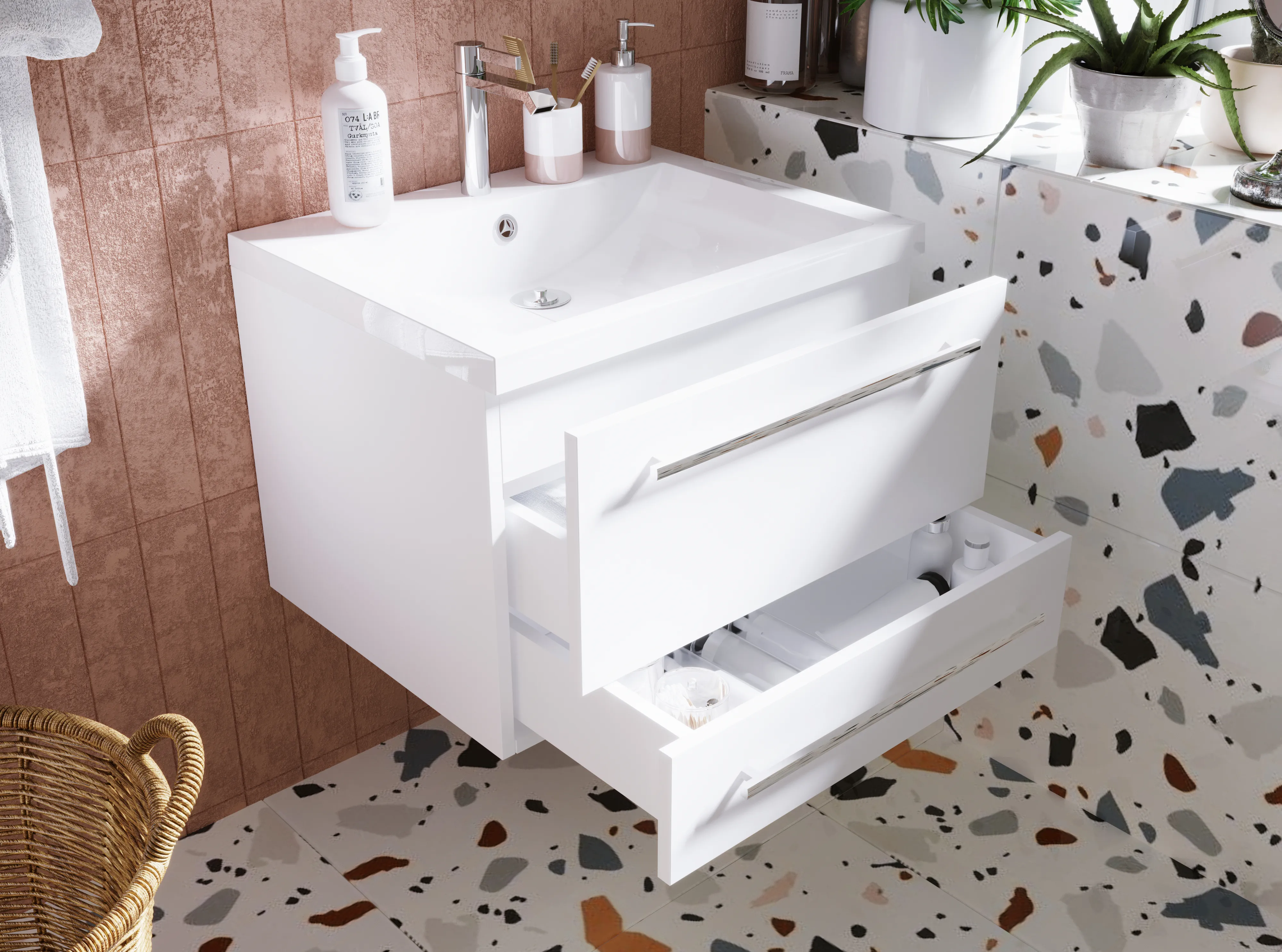 Тумба под раковину Соната, которую по праву можно назвать современной классикой - лаконичный и одновременно стильный дизайн сочетаются в ней с повышенной функциональностью, которая крайне важна в современных пространствах. Три выдвижных ящика позволяют с комфортом организовать процесс хранения любых вещей и предметов - от бытовой химии и косметики до банных аксессуаров и личных вещей. Ручки ящиков могут использоваться как держатели для полотенец и халатов. А проверенные временем, качественные материалы исполнения делают представленную модель по-настоящему практичной и долговечной.