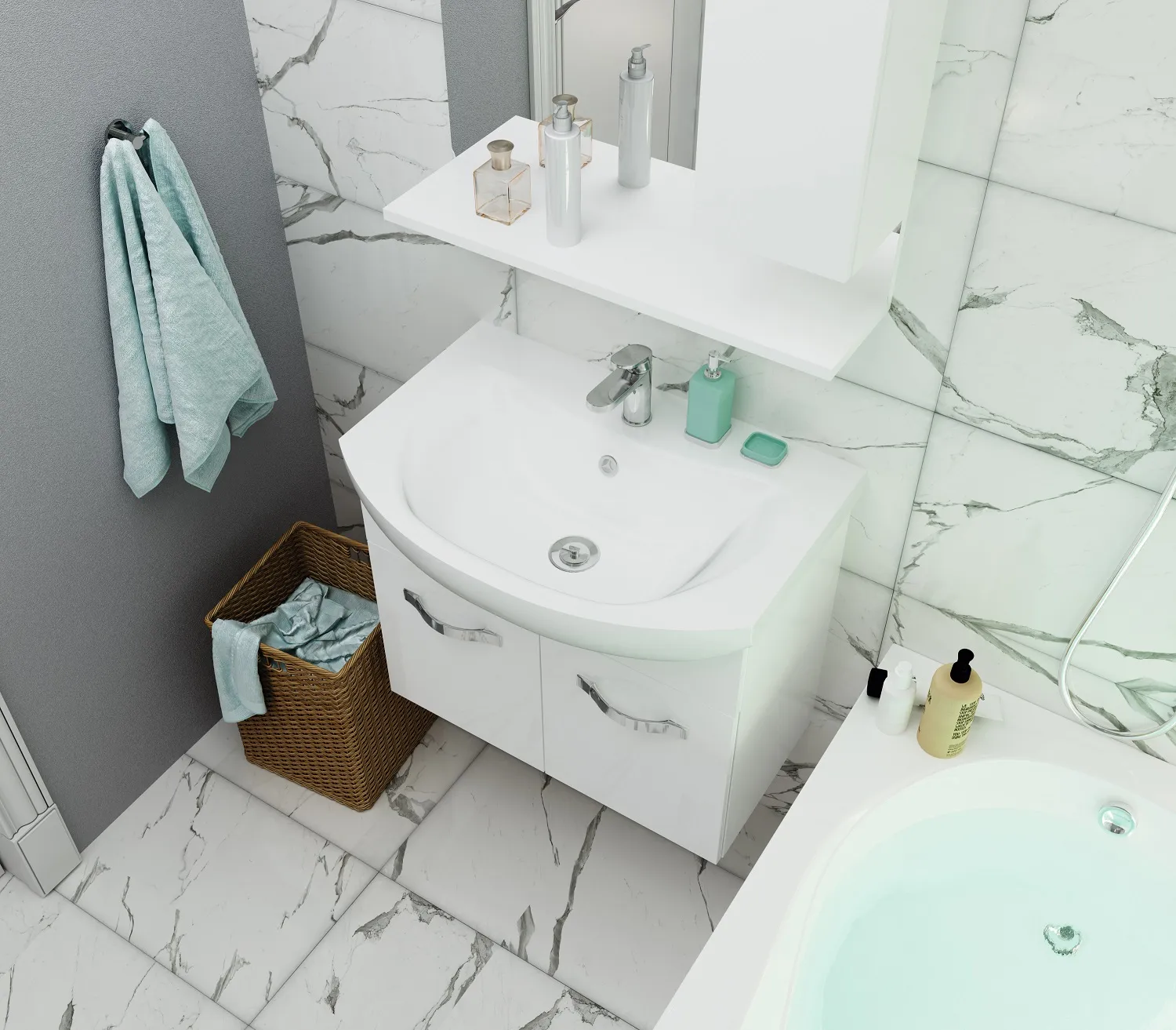 9 180 Р Тумба под раковину ТЕРА/Tera 55Н 1д. белый глянец