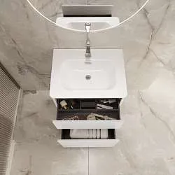 Тумба с раковиной Bumble - поистине уникальная модель, которая первой в России представляет вниманию покупателей раздвижную раковину. Она особенно актуальна для небольших помещений - с одной стороны позволяет экономить пространство, с другой - при необходимости пользоваться полноценной большой раковиной. Выдвижные ящики идеальны для комфортного хранения всего необходимого, а стильный и лаконичный дизайн без лишней фурнитуры полностью соответствует всем актуальным тенденциям.